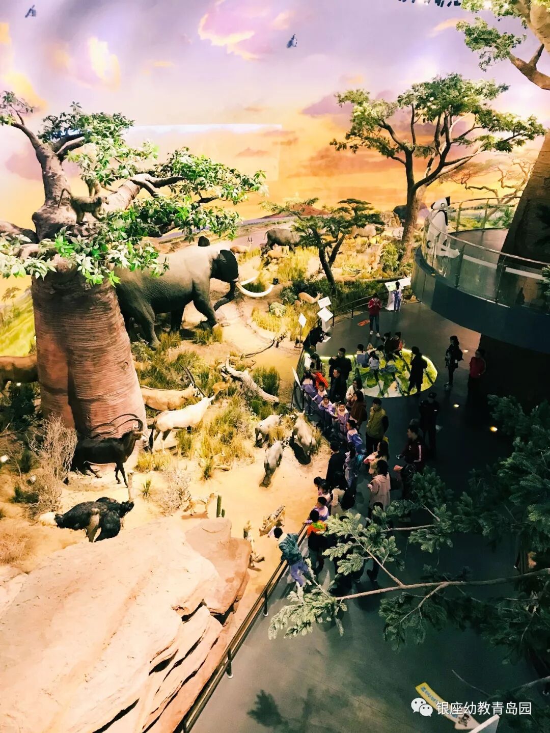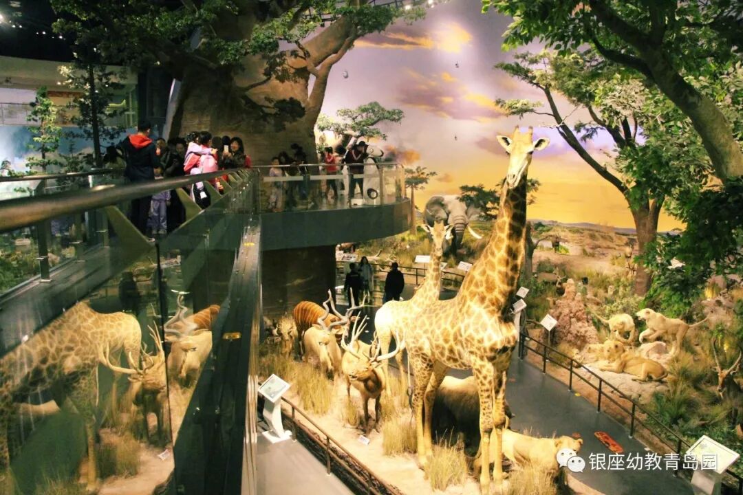 过了门口的安检,小朋友在导游的带领下分成三队开始了参观、探秘,整个展厅分为动物家园、海洋探秘、自然奇遇等几大主题板块。其中动物家园中"壮丽北美"和"狂野非洲"展示,给小朋友们留下极为深刻的印象,导游哥哥给小朋友讲了高大威猛的非洲象、凶猛残忍的非洲狮,世界上最高的动物长颈鹿,此时此刻孩子们仿佛都真切的融入了广阔壮丽的非洲草原之中。