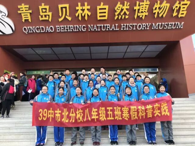 2018年2月4日,刚刚降温的青岛在这一天却变得温暖起来,天气格外的好!39中市北分校八年级五班的全体同学在班主任及家委会的组织下开启了寒假实践自然科普之旅---走进青岛贝林自然博物馆。