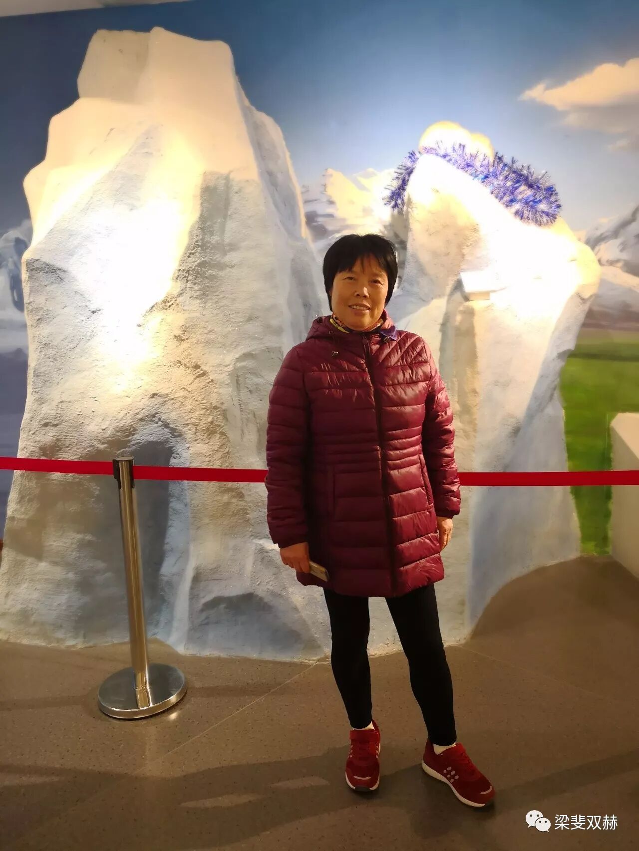 老妈说自己的衣服和雪山很应景。