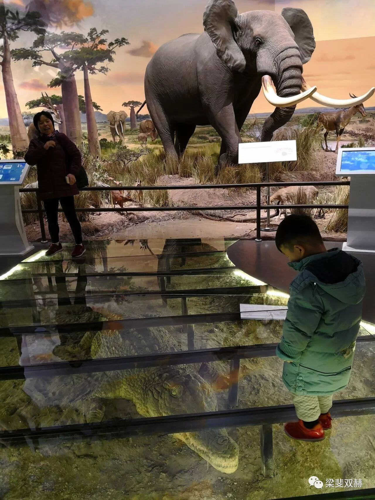 这些珍稀野生动物标本被巧妙地按照地域进行组合,在狂野非洲主题区,狮群正傲视着草原,可爱的小狮子在打闹玩耍。然而“危险”无处不在,一只身长达2米的鳄鱼正悄悄地潜伏在水塘边。原来,博物馆特意将逼真的鳄鱼标本放在玻璃地面下,让游客看到后又惊又喜。